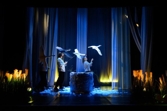Wychowane w kaczej rodzinie pisklę łabędzia nie może znaleźć sobie miejsca wśród odrzucających je zwierząt – niepodobne do żadnego z nich, nigdzie nie pasuje. Kolejne przygody powodują, że wyśmiewane przez wszystkich nie wierzy w siebie. Jest przekonane o swojej brzydocie i o tym, że wygląd decyduje o szczęściu. Spektakl poruszający temat akceptacji, empatii, otwartości na drugą istotę adresowany jest do najmłodszych widzów.